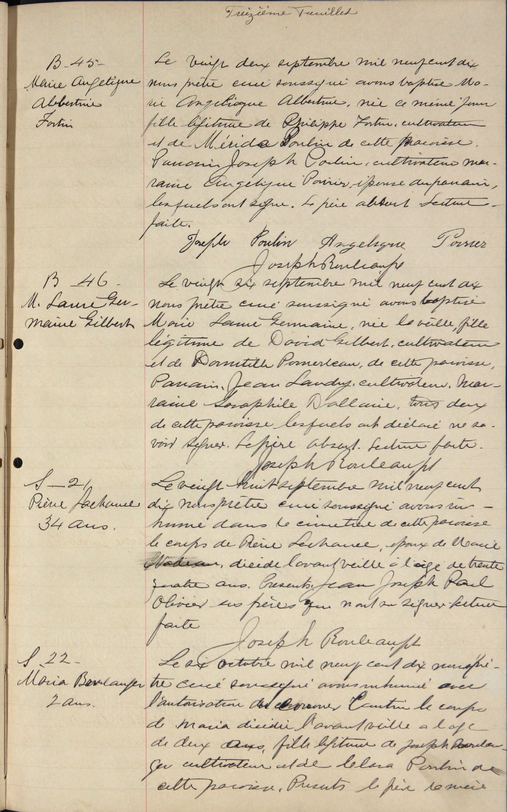 Saint-Gédéon-de-Beauce, 1899-1922, Archives nationales à Québec, Fonds Cour supérieure. District judiciaire de Beauce. État civil, (03Q,CE306,S13).