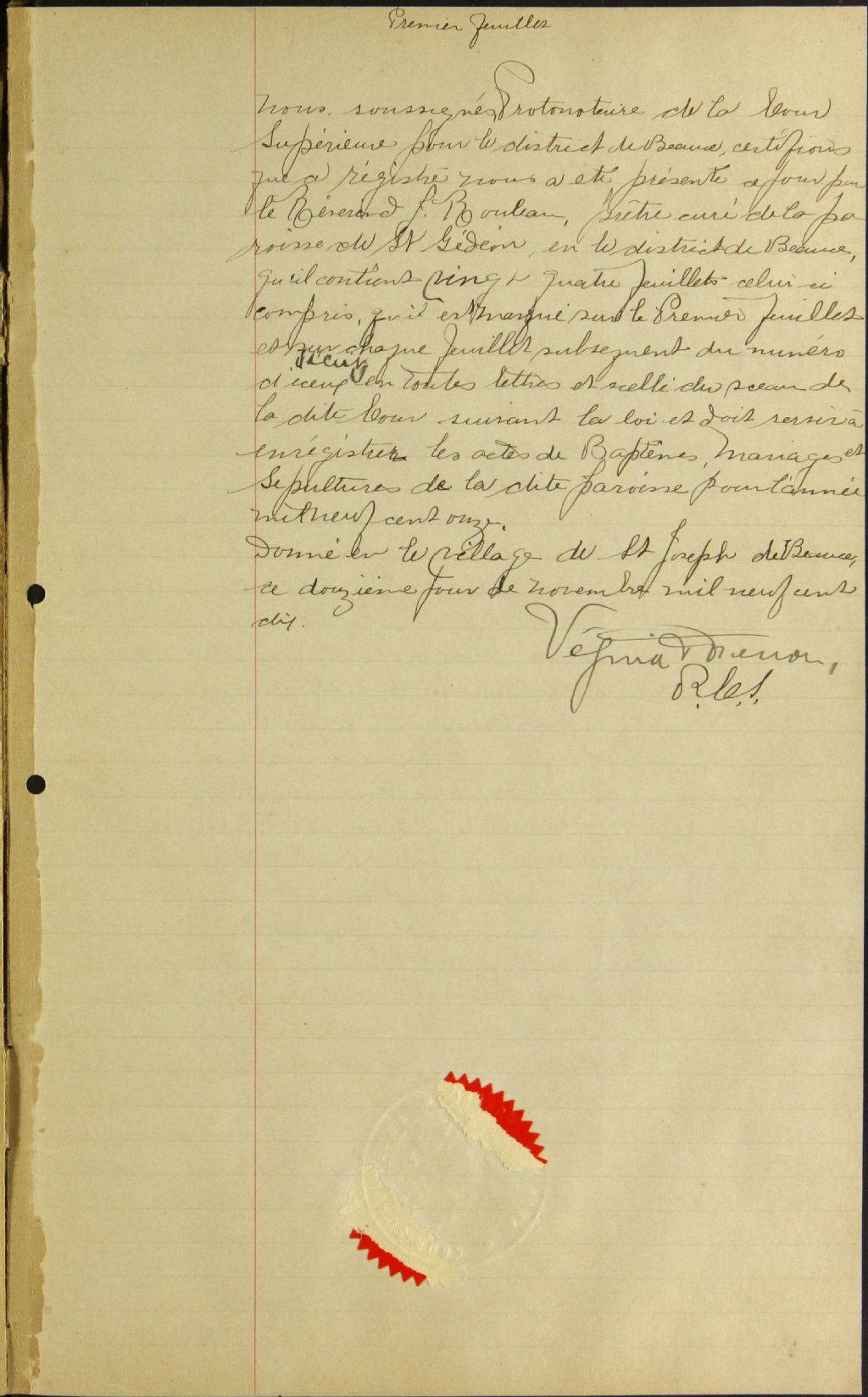 Saint-Gédéon-de-Beauce, 1899-1922, Archives nationales à Québec, Fonds Cour supérieure. District judiciaire de Beauce. État civil, (03Q,CE306,S13).
