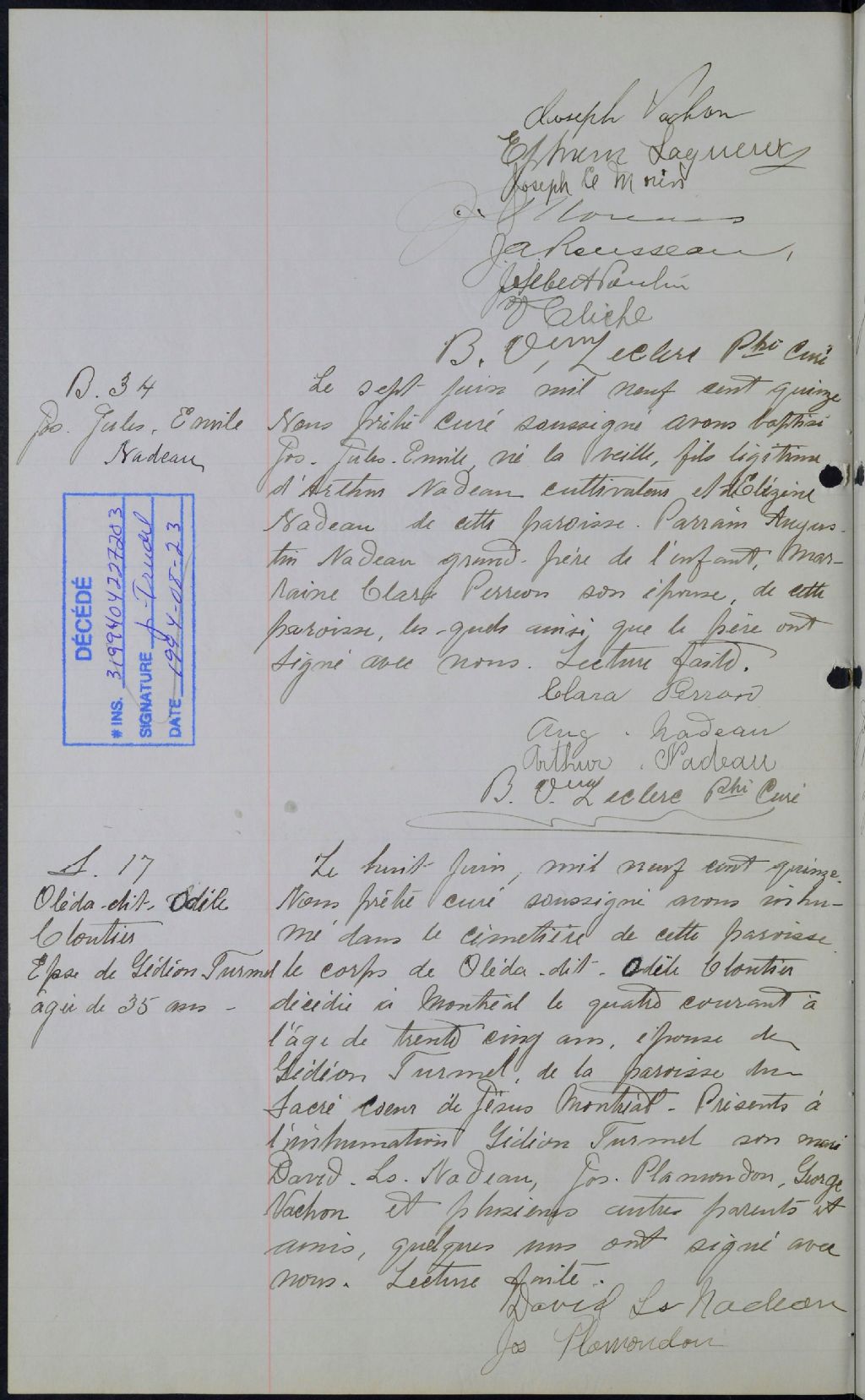 Saint-Frédéric, 1852-1922, Archives nationales à Québec, Fonds Cour supérieure. District judiciaire de Beauce. État civil, (03Q,CE306,S12).