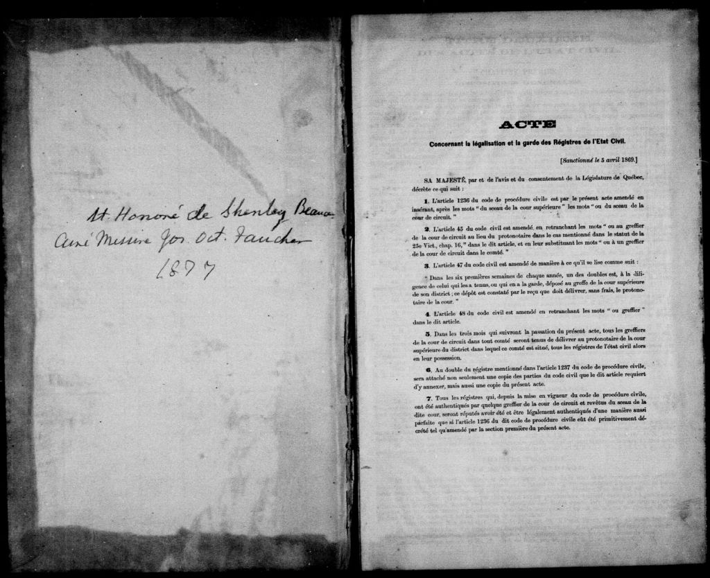 Saint-Honoré-de-Shenley, 1873-1922, Archives nationales à Québec, Fonds Cour supérieure. District judiciaire de Beauce. État civil, (03Q,CE306,S17).