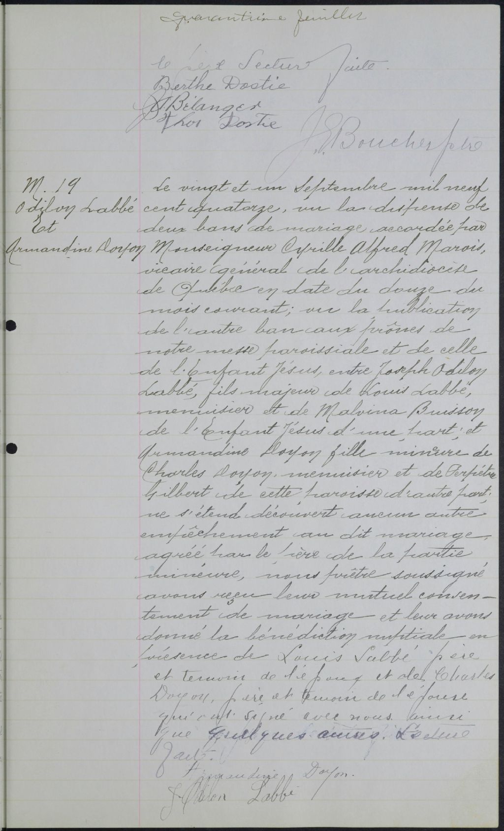 Saint-Joseph-de-la-Nouvelle-Beauce, 1738-1922, Archives nationales à Québec, Fonds Cour supérieure. District judiciaire de Beauce. État civil, (03Q,CE306,S19).