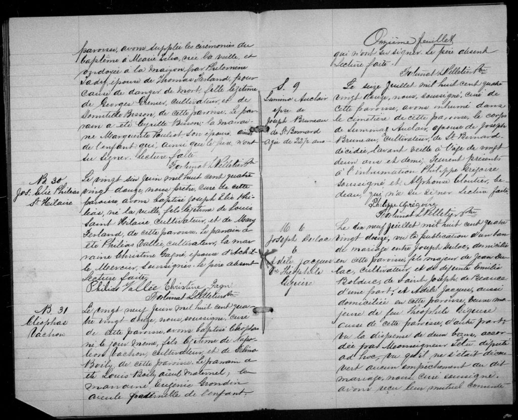 Saints-Anges, 1875-1922, Archives nationales à Québec, Fonds Cour supérieure. District judiciaire de Beauce. État civil, (03Q,CE306,S2).