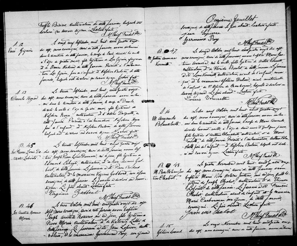 Sainte-Justine, 1864-1921, Archives nationales à Québec, Fonds Cour supérieure. District judiciaire de Beauce. État civil, (03Q,CE306,S20).