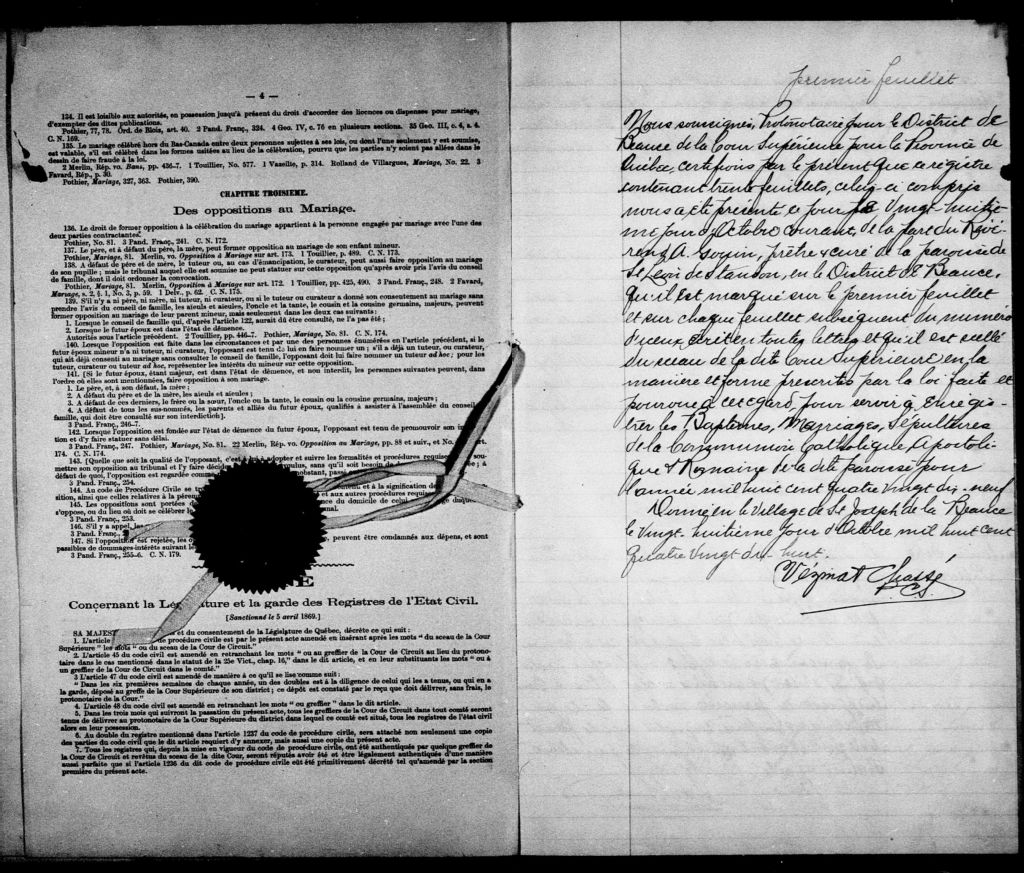 Saint-Léon-de-Standon, 1872-1922, Archives nationales à Québec, Fonds Cour supérieure. District judiciaire de Beauce. État civil, (03Q,CE306,S21).