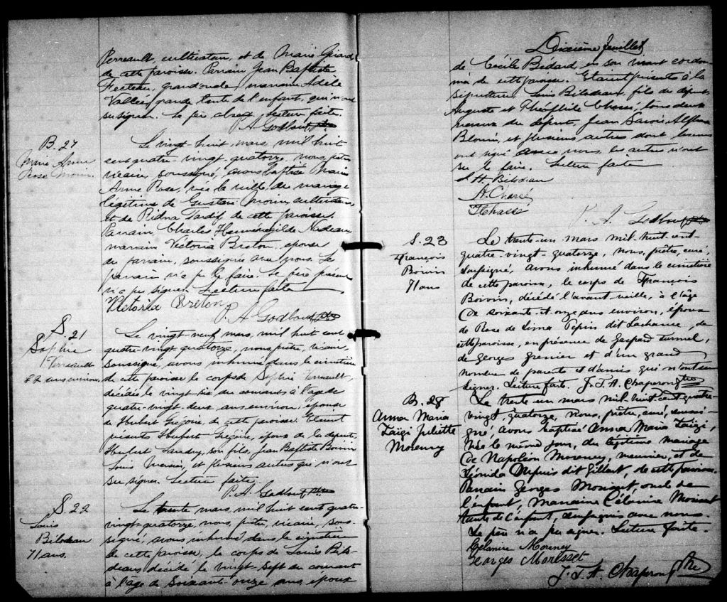 Sainte-Marie-de-la-Nouvelle-Beauce, 1745-1922, Archives nationales à Québec, Fonds Cour supérieure. District judiciaire de Beauce. État civil, (03Q,CE306,S24).