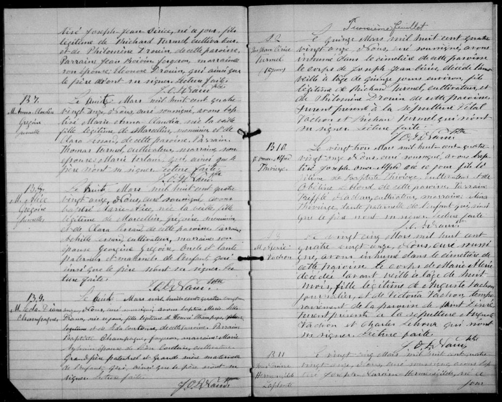 Saint-Sévérin, 1872-1922, Archives nationales à Québec, Fonds Cour supérieure. District judiciaire de Beauce. État civil, (03Q,CE306,S30).