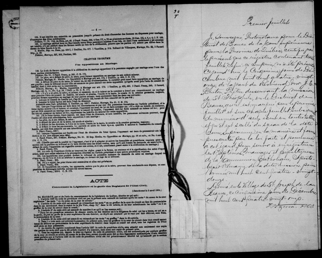 Saint-Théophile, 1891-1922, Archives nationales à Québec, Fonds Cour supérieure. District judiciaire de Beauce. État civil, (03Q,CE306,S31).