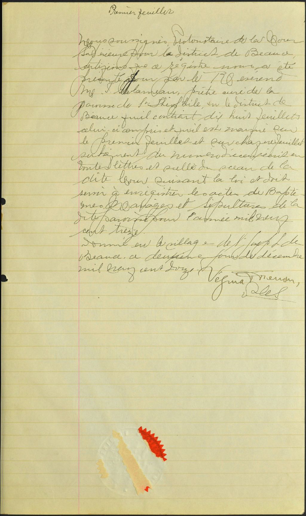 Saint-Théophile, 1891-1922, Archives nationales à Québec, Fonds Cour supérieure. District judiciaire de Beauce. État civil, (03Q,CE306,S31).