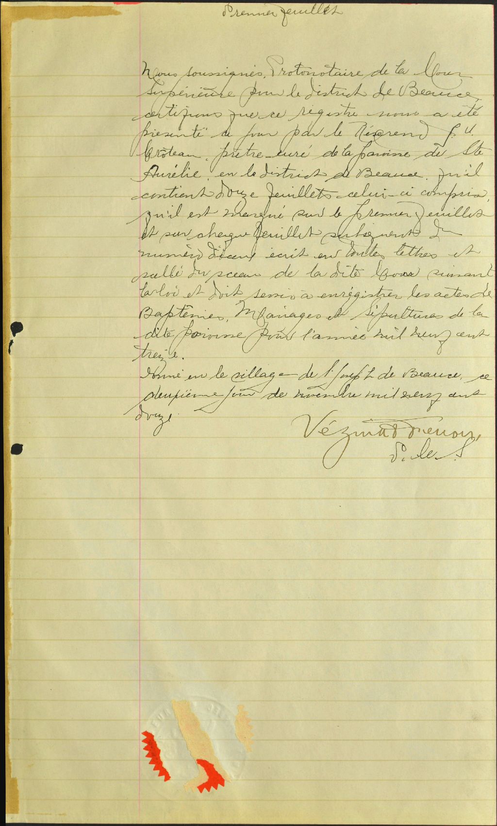 Sainte-Aurélie, 1906-1922, Archives nationales à Québec, Fonds Cour supérieure. District judiciaire de Beauce. État civil, (03Q,CE306,S39).