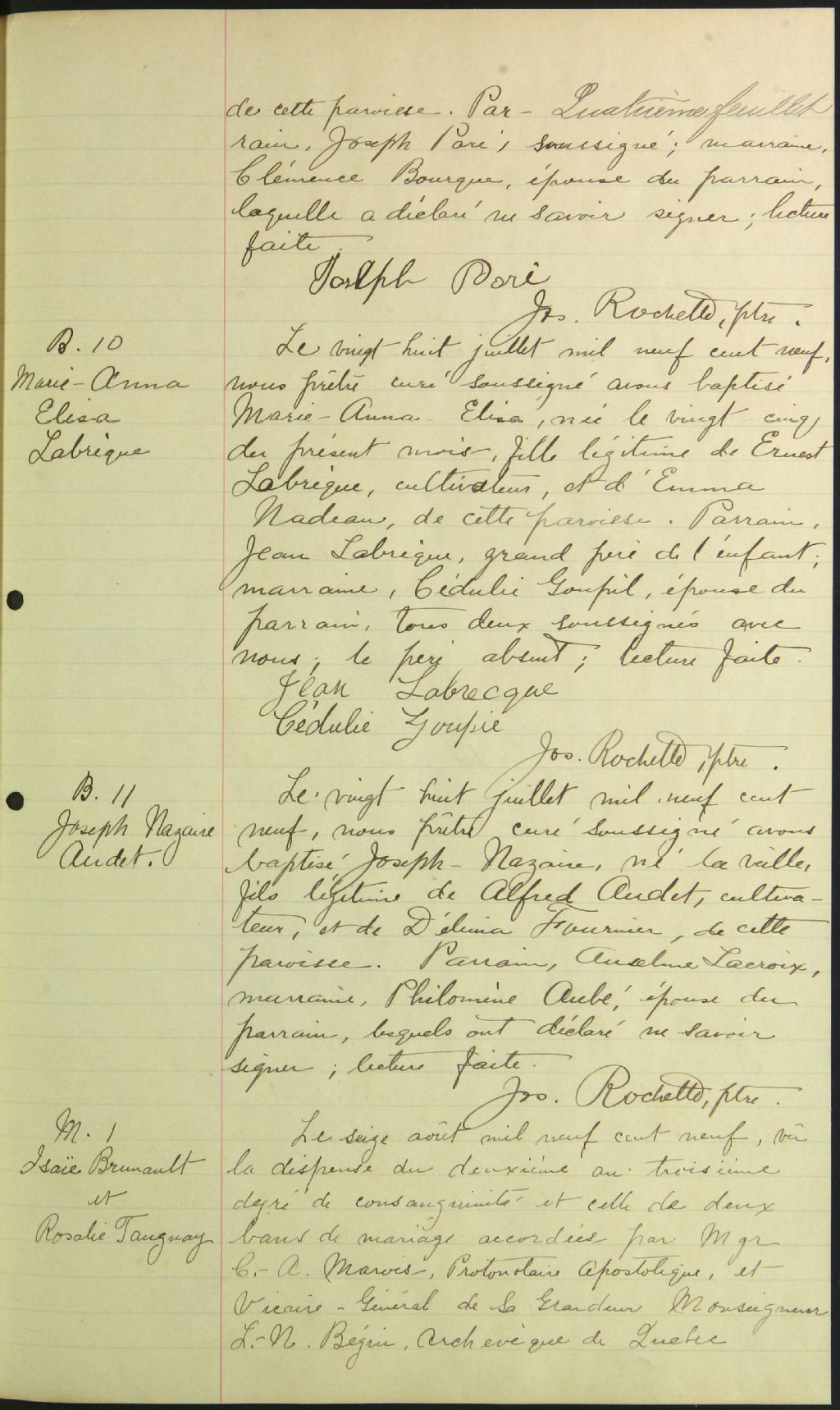 Saint-Nazaire, 1902-1922, Archives nationales à Québec, Fonds Cour supérieure. District judiciaire de Beauce. État civil, (03Q,CE306,S40).