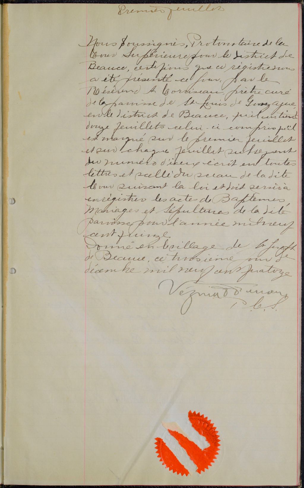 Saint-Louis-de-Gonzague, 1912-1922, Archives nationales à Québec, Fonds Cour supérieure. District judiciaire de Beauce. État civil, (03Q,CE306,S41).