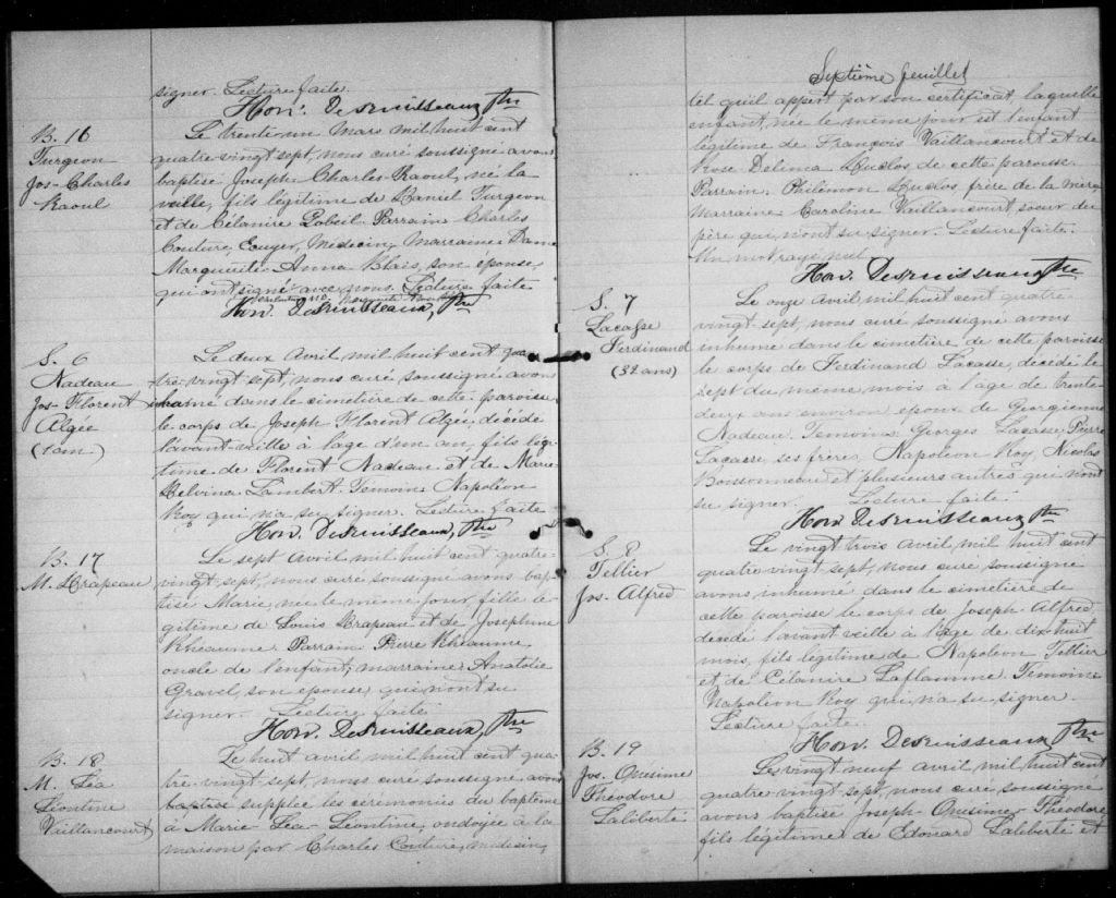 Saint-Bernard, 1844-1922, Archives nationales à Québec, Fonds Cour supérieure. District judiciaire de Beauce. État civil, (03Q,CE306,S5).