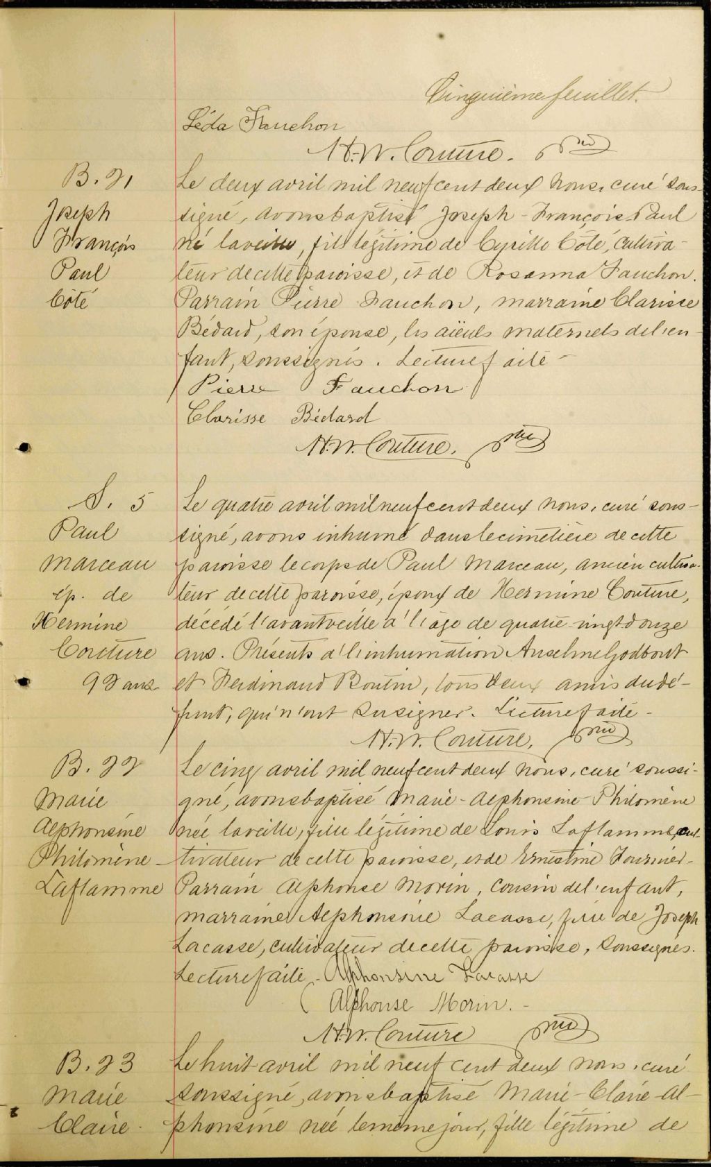 Sainte-Claire, 1824-1922, Archives nationales à Québec, Fonds Cour supérieure. District judiciaire de Beauce. État civil, (03Q,CE306,S6).