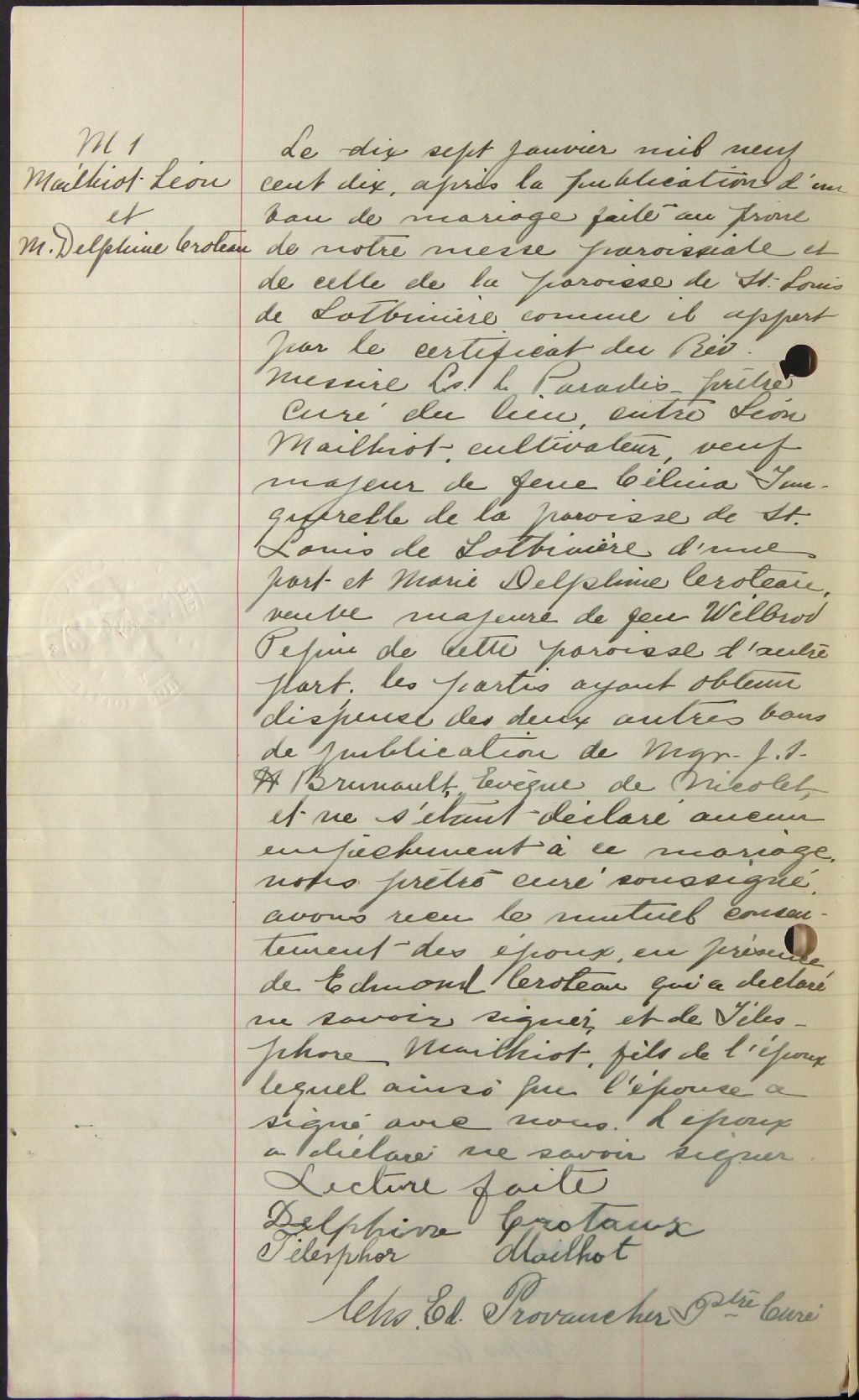Sainte-Cécile-de-Lévrard, 1908-1920, Archives nationales à Trois-Rivières, Fonds Cour supérieure. District judiciaire de Trois-Rivières. État civil, (04T,CE401,S1).