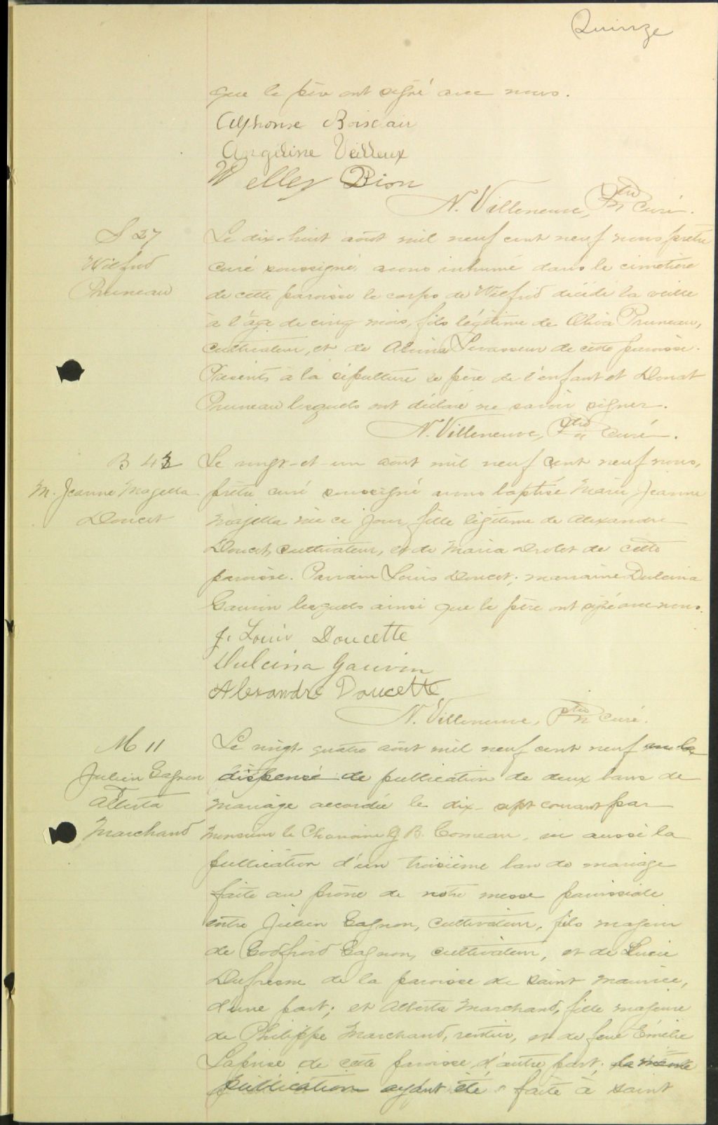 - Cette série regroupe les registres originaux de l'état civil, lesquels contiennent les enregistrements de baptêmes, de mariages et de sépultures consignés par le curé ou son représentant au cours de la période concernée par les documents.Outre les renseignements à caractère généalogique que nous pouvons y puiser, cette série peut constituer une source documentaire importante pour toute étude-statistique ou comparative sur les conditions de vie à différentes époques (mortalité infantile, espérance de vie) ou pour toute recherche portant sur l'occupation des terres (lieu de résidence), sur le mode de vie (métiers et professions, statut et âge des époux), sur les classes sociales (titres des parties impliquées, témoins/amis/parents présents lors d'un mariage), sur des évènements spéciaux (quelques mentions dans les sépultures) et sur des sujets à incidence médicale tels les maladies héréditaires (cause du décès)