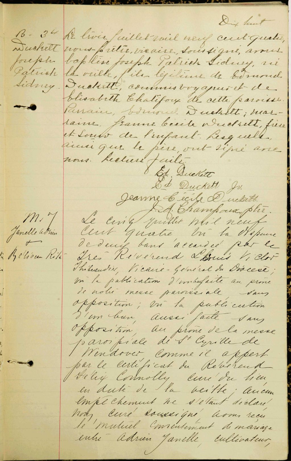 - Cette série regroupe les registres originaux de l'état civil, lesquels contiennent les enregistrements de baptêmes, de mariages et de sépultures consignés par le curé ou son représentant au cours de la période concernée par les documents.Outre les renseignements à caractère généalogique que nous pouvons y puiser, cette série peut constituer une source documentaire importante pour toute étude-statistique ou comparative sur les conditions de vie à différentes époques (mortalité infantile, espérance de vie) ou pour toute recherche portant sur l'occupation des terres (lieu de résidence), sur le mode de vie (métiers et professions, statut et âge des époux), sur les classes sociales (titres des parties impliquées, témoins/amis/parents présents lors d'un mariage), sur des évènements spéciaux (quelques mentions dans les sépultures) et sur des sujets à incidence médicale tels les maladies héréditaires (cause du décès)