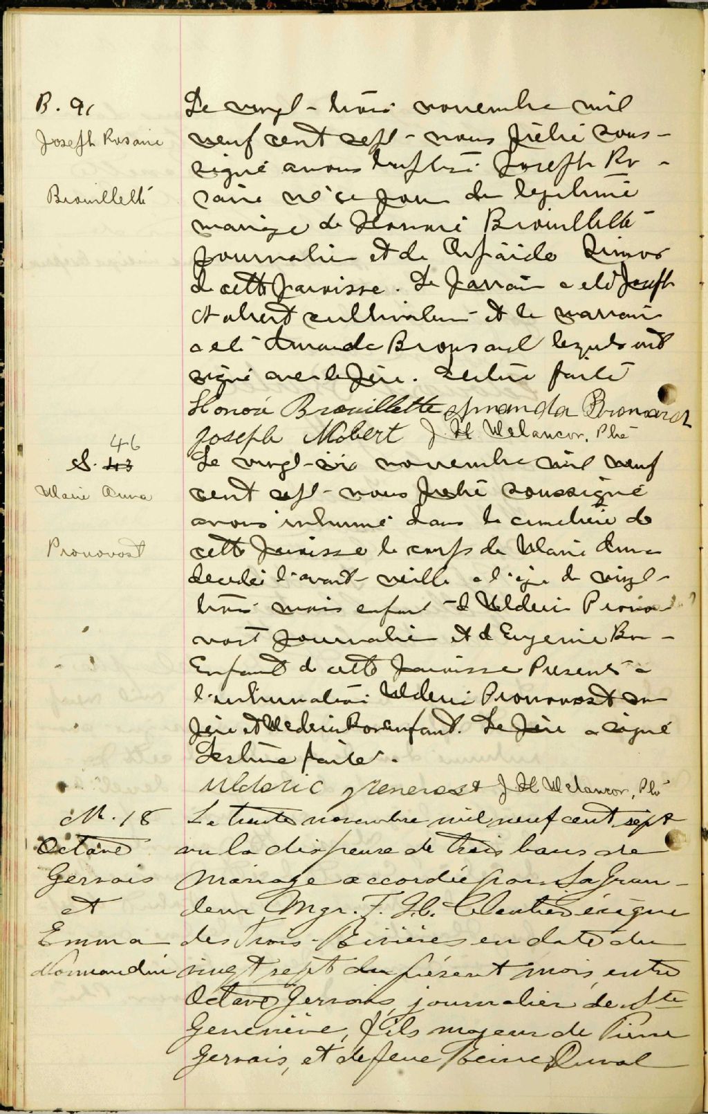 - Cette série regroupe les registres originaux de l'état civil, lesquels contiennent les enregistrements de baptêmes, de mariages et de sépultures consignés par le curé ou son représentant au cours de la période concernée par les documents.Outre les renseignements à caractère généalogique que nous pouvons y puiser, cette série peut constituer une source documentaire importante pour toute étude-statistique ou comparative sur les conditions de vie à différentes époques (mortalité infantile, espérance de vie) ou pour toute recherche portant sur l'occupation des terres (lieu de résidence), sur le mode de vie (métiers et professions, statut et âge des époux), sur les classes sociales (titres des parties impliquées, témoins/amis/parents présents lors d'un mariage), sur des évènements spéciaux (quelques mentions dans les sépultures) et sur des sujets à incidence médicale tels les maladies héréditaires (cause du décès)