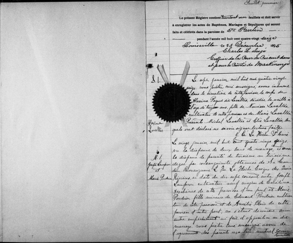 Saint-Paulin, 1850-1920, Archives nationales à Trois-Rivières, Fonds Cour supérieure. District judiciaire de Trois-Rivières. État civil, (04T,CE401,S39).