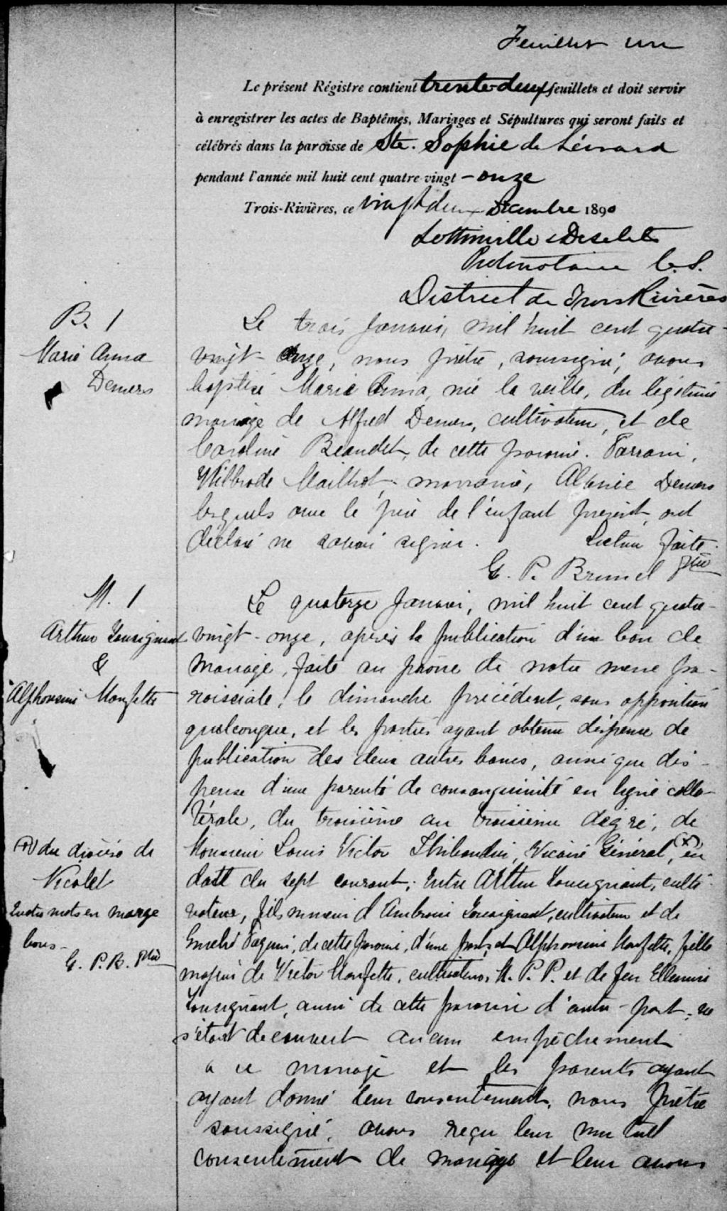 Sainte-Sophie-de-Lévrard, 1874-1920, Archives nationales à Trois-Rivières, Fonds Cour supérieure. District judiciaire de Trois-Rivières. État civil, (04T,CE401,S42).