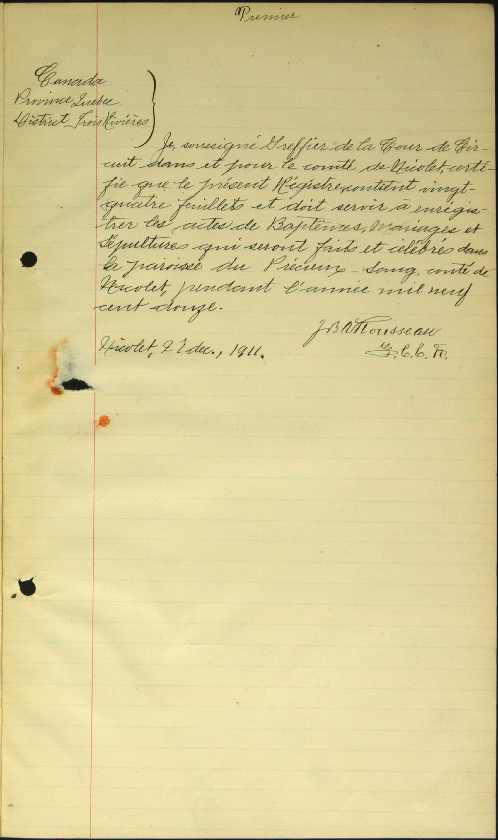 Très-Précieux-Sang-de-Notre-Seigneur, 1903-1920, Archives nationales à Trois-Rivières, Fonds Cour supérieure. District judiciaire de Trois-Rivières. État civil, (04T,CE401,S60).