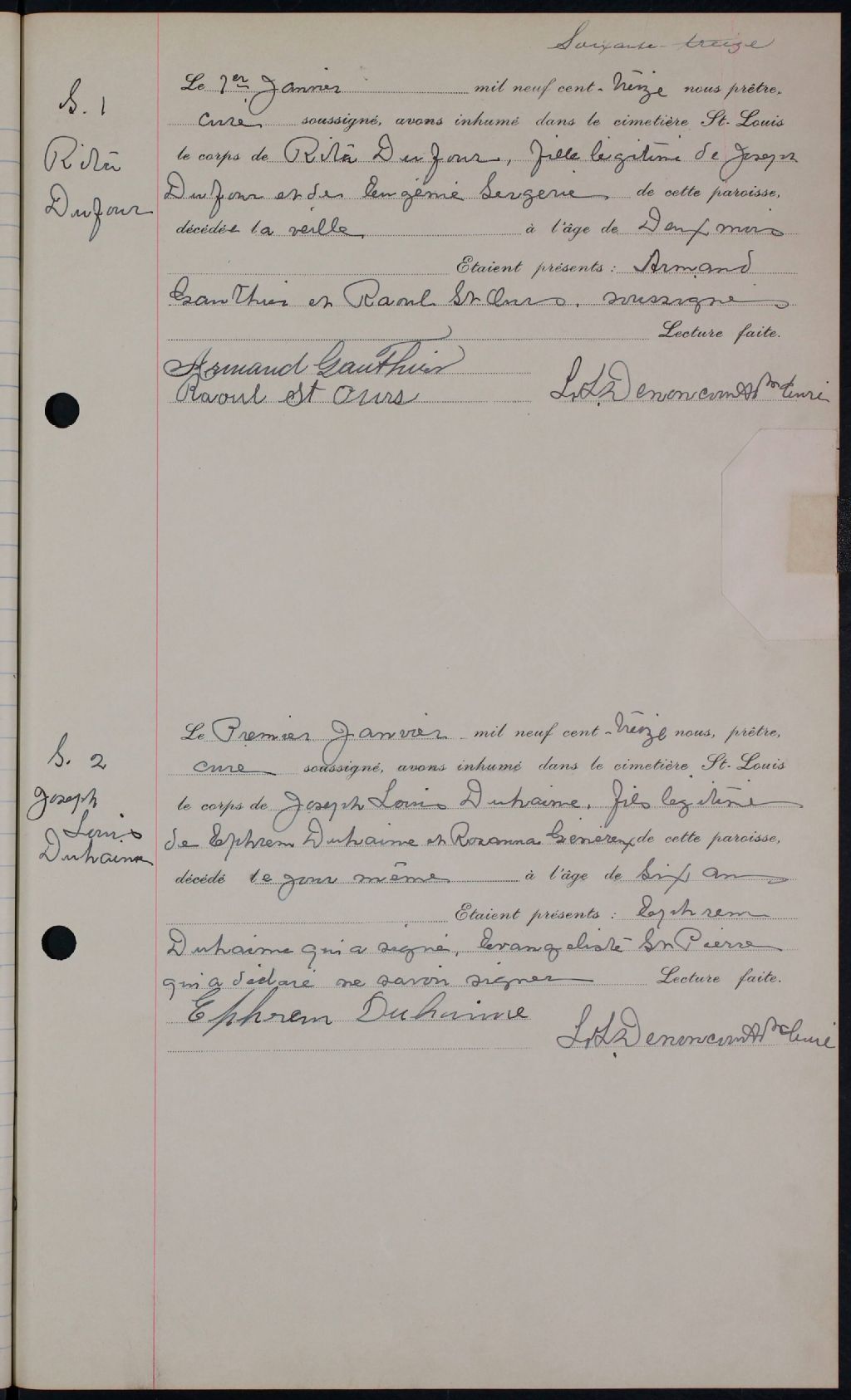 Saint-Philippe, 1909-1920, Archives nationales à Trois-Rivières, Fonds Cour supérieure. District judiciaire de Trois-Rivières. État civil, (04T,CE401,S63).