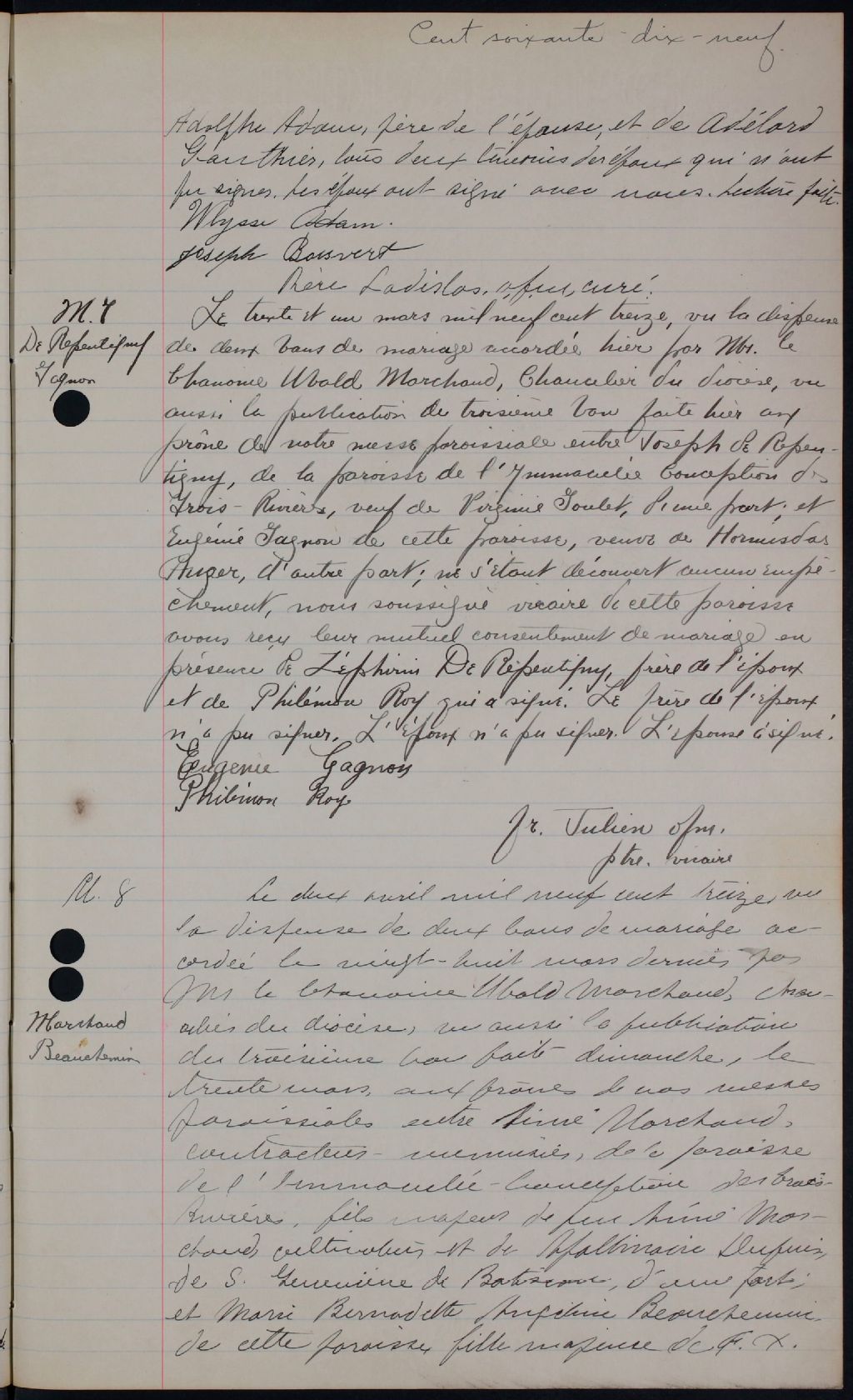 Notre-Dame-des-Sept-Allégresses, 1911-1920, Archives nationales à Trois-Rivières, Fonds Cour supérieure. District judiciaire de Trois-Rivières. État civil, (04T,CE401,S64).