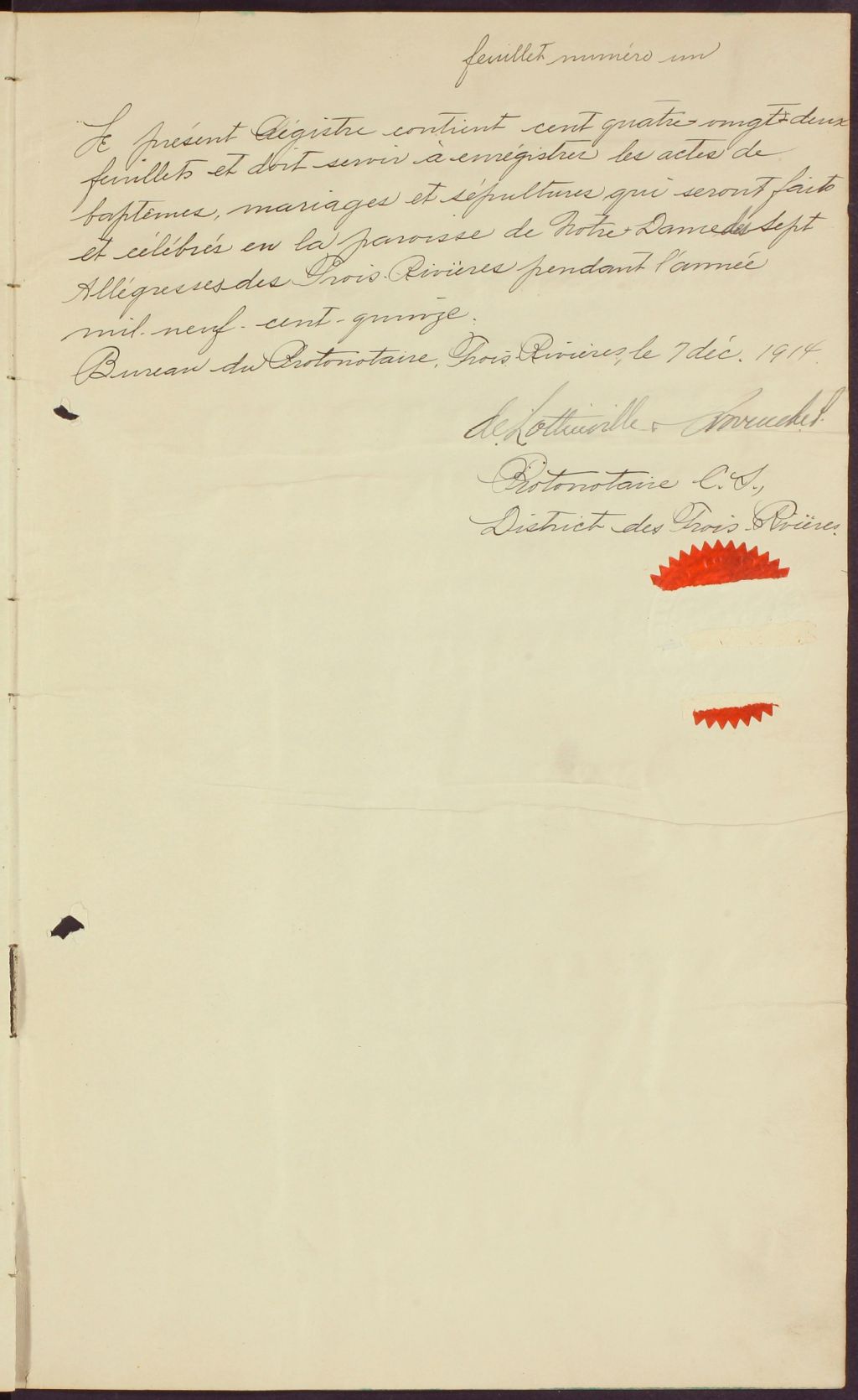 Notre-Dame-des-Sept-Allégresses, 1911-1920, Archives nationales à Trois-Rivières, Fonds Cour supérieure. District judiciaire de Trois-Rivières. État civil, (04T,CE401,S64).