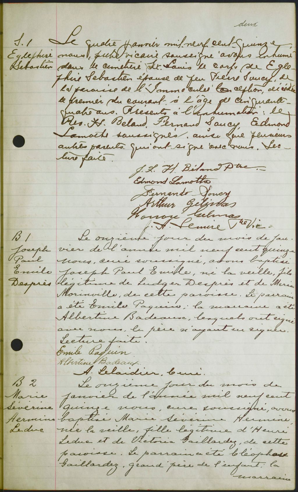 Sainte-Cécile de Trois-Rivières, 1914-1920, Archives nationales à Trois-Rivières, Fonds Cour supérieure. District judiciaire de Trois-Rivières. État civil, (04T,CE401,S65).