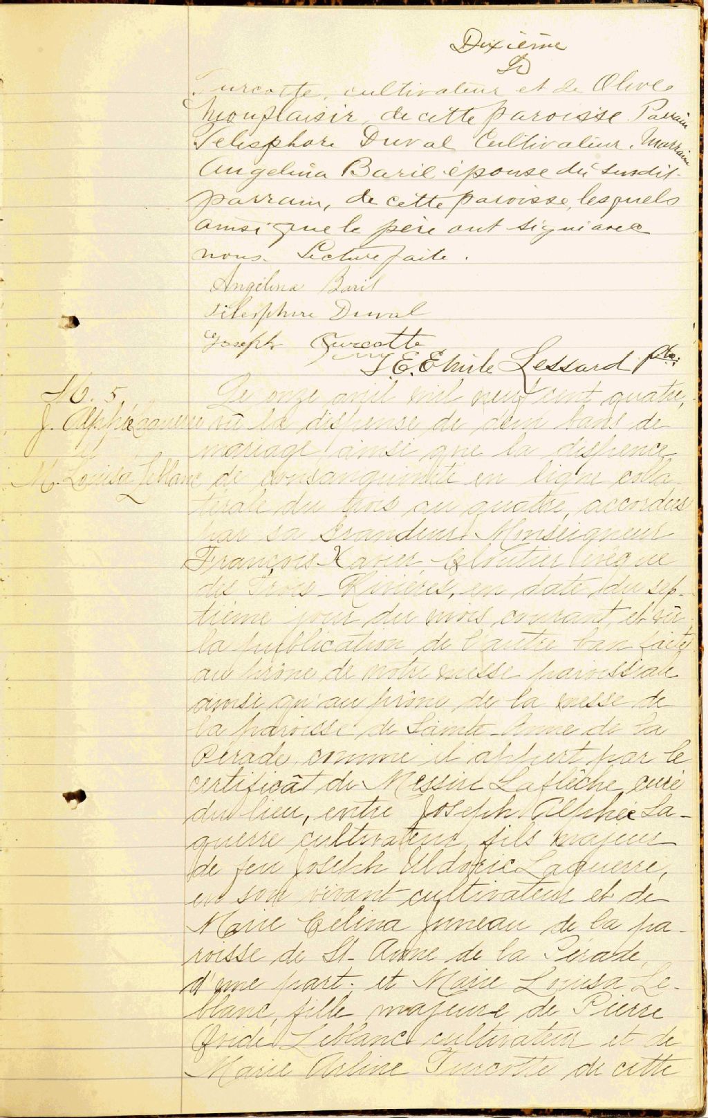 - Cette série regroupe les registres originaux de l'état civil, lesquels contiennent les enregistrements de baptêmes, de mariages et de sépultures consignés par le curé ou son représentant au cours de la période concernée par les documents.Outre les renseignements à caractère généalogique que nous pouvons y puiser, cette série peut constituer une source documentaire importante pour toute étude-statistique ou comparative sur les conditions de vie à différentes époques (mortalité infantile, espérance de vie) ou pour toute recherche portant sur l'occupation des terres (lieu de résidence), sur le mode de vie (métiers et professions, statut et âge des époux), sur les classes sociales (titres des parties impliquées, témoins/amis/parents présents lors d'un mariage), sur des évènements spéciaux (quelques mentions dans les sépultures) et sur des sujets à incidence médicale tels les maladies héréditaires (cause du décès).Cette série contient les manuscrits originaux des registres civils (1679-1900), des transcriptions des reqistres civils (1679-1776) et des photocopies de registres paroissiaux (1680-1744). Toutes catégories confondues, il manquerait les actes de janvier à septembre 1744, 1746-1749, 1751-1752 et 1764 à novembre 1774. Pour ces années, le chercheur doit consulter les registres paroissiaux