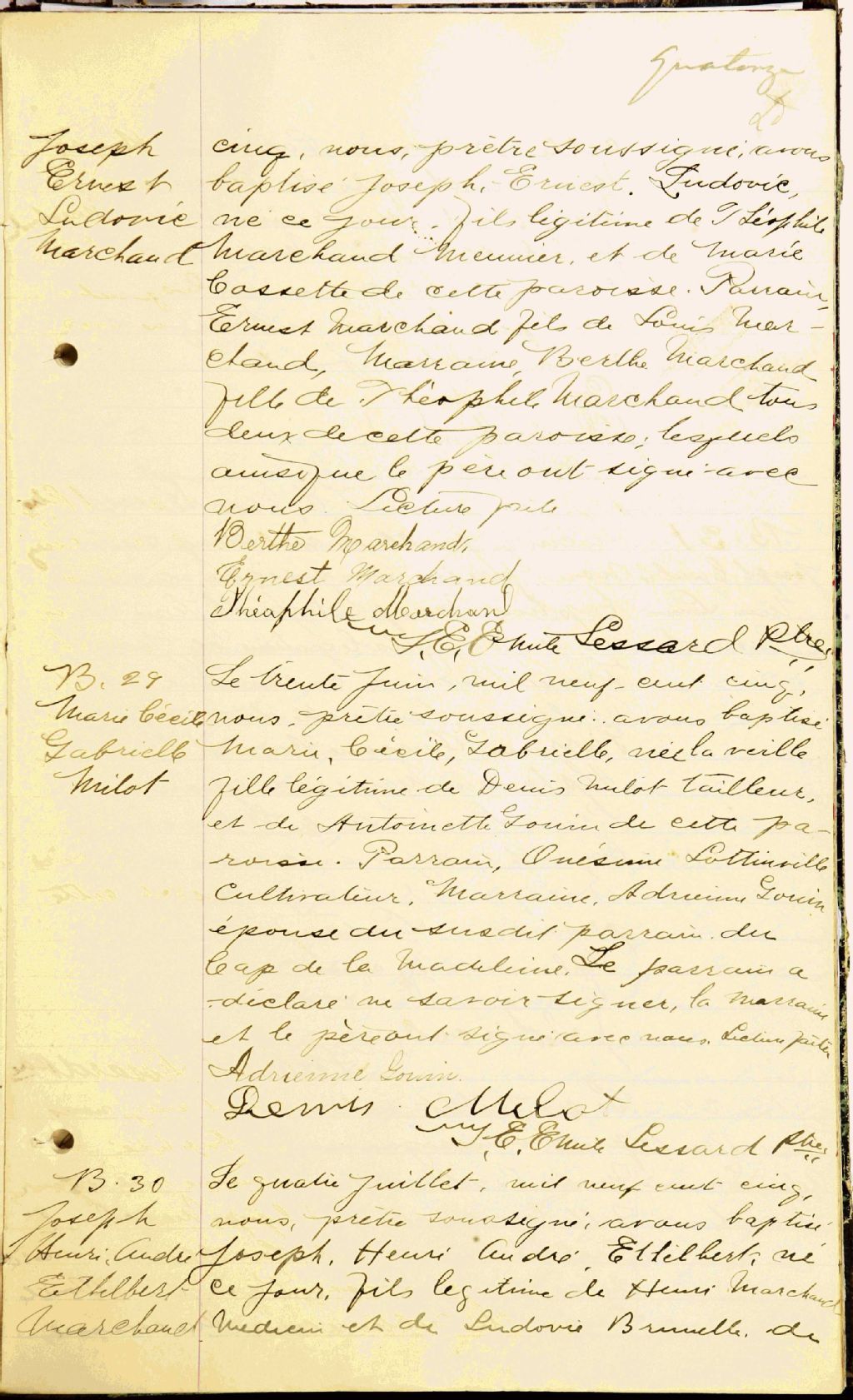 - Cette série regroupe les registres originaux de l'état civil, lesquels contiennent les enregistrements de baptêmes, de mariages et de sépultures consignés par le curé ou son représentant au cours de la période concernée par les documents.Outre les renseignements à caractère généalogique que nous pouvons y puiser, cette série peut constituer une source documentaire importante pour toute étude-statistique ou comparative sur les conditions de vie à différentes époques (mortalité infantile, espérance de vie) ou pour toute recherche portant sur l'occupation des terres (lieu de résidence), sur le mode de vie (métiers et professions, statut et âge des époux), sur les classes sociales (titres des parties impliquées, témoins/amis/parents présents lors d'un mariage), sur des évènements spéciaux (quelques mentions dans les sépultures) et sur des sujets à incidence médicale tels les maladies héréditaires (cause du décès).Cette série contient les [...]