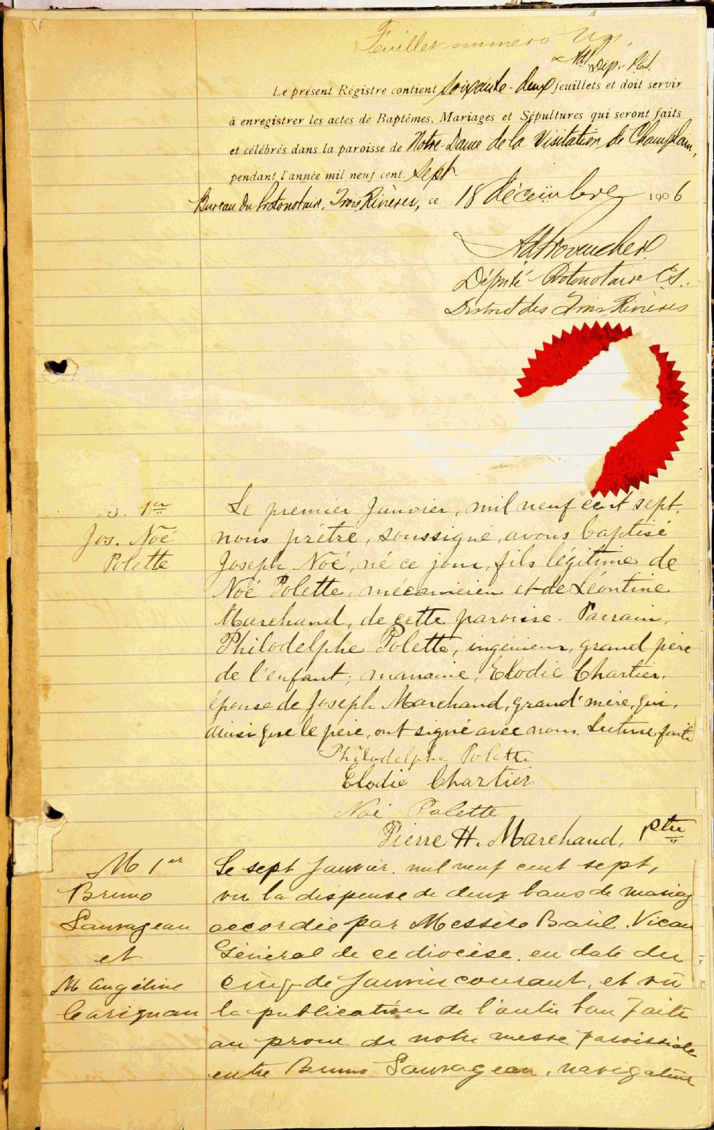 - Cette série regroupe les registres originaux de l'état civil, lesquels contiennent les enregistrements de baptêmes, de mariages et de sépultures consignés par le curé ou son représentant au cours de la période concernée par les documents.Outre les renseignements à caractère généalogique que nous pouvons y puiser, cette série peut constituer une source documentaire importante pour toute étude-statistique ou comparative sur les conditions de vie à différentes époques (mortalité infantile, espérance de vie) ou pour toute recherche portant sur l'occupation des terres (lieu de résidence), sur le mode de vie (métiers et professions, statut et âge des époux), sur les classes sociales (titres des parties impliquées, témoins/amis/parents présents lors d'un mariage), sur des évènements spéciaux (quelques mentions dans les sépultures) et sur des sujets à incidence médicale tels les maladies héréditaires (cause du décès).Cette série contient les manuscrits originaux des registres civils (1679-1900), des transcriptions des reqistres civils (1679-1776) et des photocopies de registres paroissiaux (1680-1744). Toutes catégories confondues, il manquerait les actes de janvier à septembre 1744, 1746-1749, 1751-1752 et 1764 à novembre 1774. Pour ces années, le chercheur doit consulter les registres paroissiaux