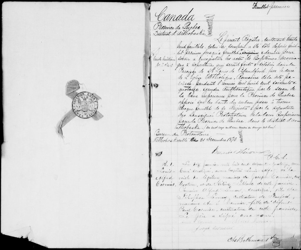 Saint-Louis-de-Blandford, 1840-1921, Archives nationales à Trois-Rivières, Fonds Cour supérieure. District judiciaire d'Arthabaska. État civil, (04T,CE402,S10).