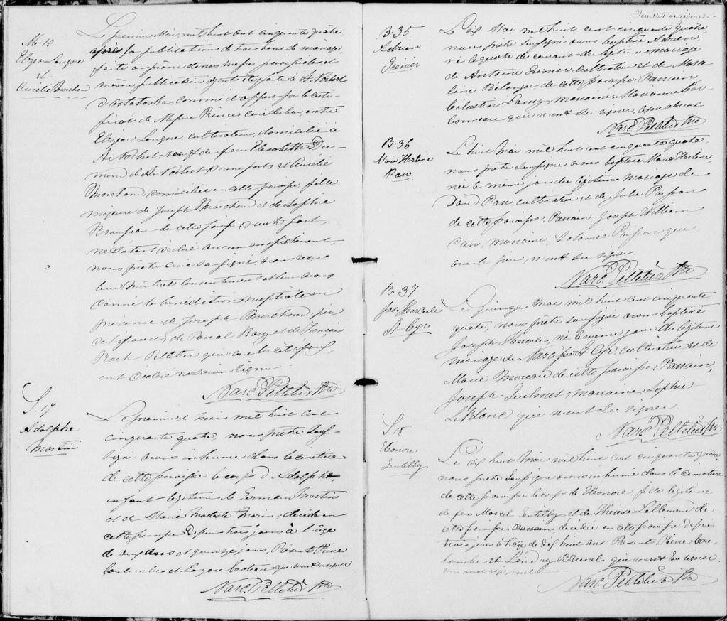 - Cette série regroupe les registres originaux de l'état civil, lesquels contiennent les enregistrements de baptêmes, de mariages et de sépultures consignés par le curé ou son représentant au cours de la période concernée par les documents.Outre les renseignements à caractère généalogique que nous pouvons y puiser, cette série peut constituer une source documentaire importante pour toute étude-statistique ou comparative sur les conditions de vie à différentes époques (mortalité infantile, espérance de vie) ou pour toute recherche portant sur l'occupation des terres (lieu de résidence), sur le mode de vie (métiers et professions, statut et âge des époux), sur les classes sociales (titres des parties impliquées, témoins/amis/parents présents lors d'un mariage), sur des évènements spéciaux (quelques mentions dans les sépultures) et sur des sujets à incidence médicale tels les maladies héréditaires (cause du décès).Cette série regroupe les [...]