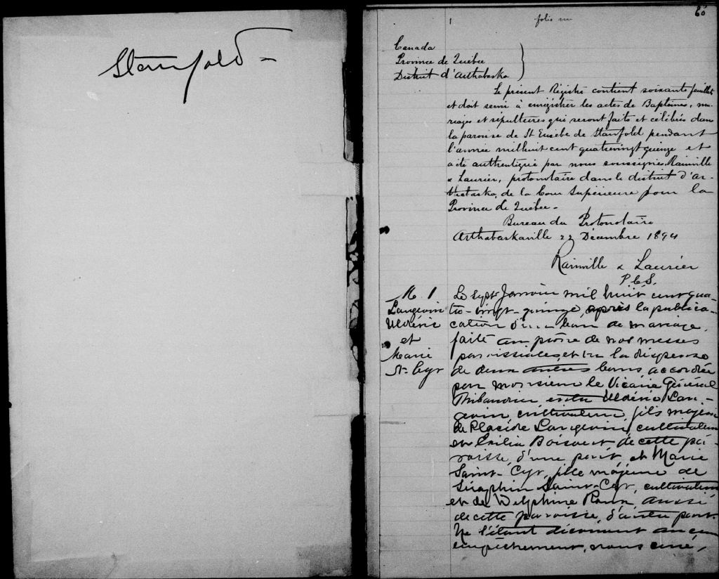 - Cette série regroupe les registres originaux de l'état civil, lesquels contiennent les enregistrements de baptêmes, de mariages et de sépultures consignés par le curé ou son représentant au cours de la période concernée par les documents.Outre les renseignements à caractère généalogique que nous pouvons y puiser, cette série peut constituer une source documentaire importante pour toute étude-statistique ou comparative sur les conditions de vie à différentes époques (mortalité infantile, espérance de vie) ou pour toute recherche portant sur l'occupation des terres (lieu de résidence), sur le mode de vie (métiers et professions, statut et âge des époux), sur les classes sociales (titres des parties impliquées, témoins/amis/parents présents lors d'un mariage), sur des évènements spéciaux (quelques mentions dans les sépultures) et sur des sujets à incidence médicale tels les maladies héréditaires (cause du décès).Cette série regroupe les [...]