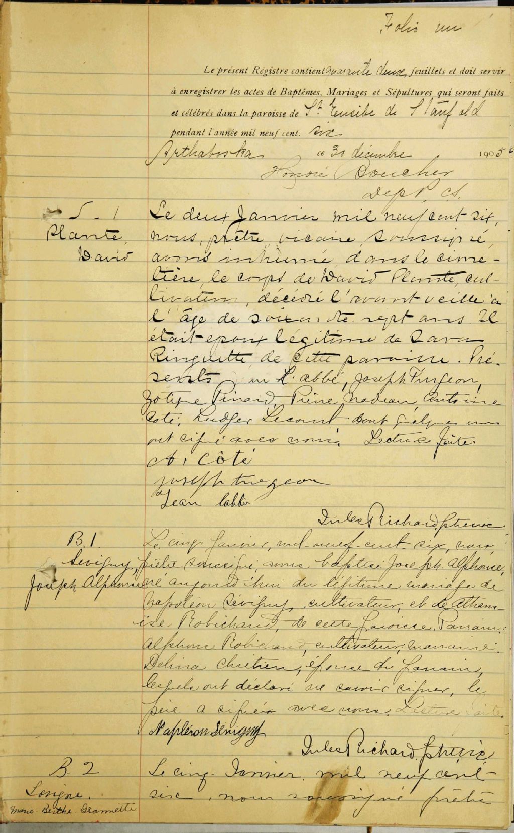 - Cette série regroupe les registres originaux de l'état civil, lesquels contiennent les enregistrements de baptêmes, de mariages et de sépultures consignés par le curé ou son représentant au cours de la période concernée par les documents.Outre les renseignements à caractère généalogique que nous pouvons y puiser, cette série peut constituer une source documentaire importante pour toute étude-statistique ou comparative sur les conditions de vie à différentes époques (mortalité infantile, espérance de vie) ou pour toute recherche portant sur l'occupation des terres (lieu de résidence), sur le mode de vie (métiers et professions, statut et âge des époux), sur les classes sociales (titres des parties impliquées, témoins/amis/parents présents lors d'un mariage), sur des évènements spéciaux (quelques mentions dans les sépultures) et sur des sujets à incidence médicale tels les maladies héréditaires (cause du décès).Cette série regroupe les registres originaux de l'état civil, lesquels contiennent les enregistrements de baptêmes, de mariages et de sépultures consignés par le curé ou son représentant au cours de la période concernée par les documents