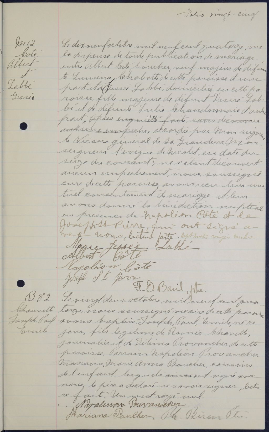 - Cette série regroupe les registres originaux de l'état civil, lesquels contiennent les enregistrements de baptêmes, de mariages et de sépultures consignés par le curé ou son représentant au cours de la période concernée par les documents.Outre les renseignements à caractère généalogique que nous pouvons y puiser, cette série peut constituer une source documentaire importante pour toute étude-statistique ou comparative sur les conditions de vie à différentes époques (mortalité infantile, espérance de vie) ou pour toute recherche portant sur l'occupation des terres (lieu de résidence), sur le mode de vie (métiers et professions, statut et âge des époux), sur les classes sociales (titres des parties impliquées, témoins/amis/parents présents lors d'un mariage), sur des évènements spéciaux (quelques mentions dans les sépultures) et sur des sujets à incidence médicale tels les maladies héréditaires (cause du décès).Cette série regroupe les [...]