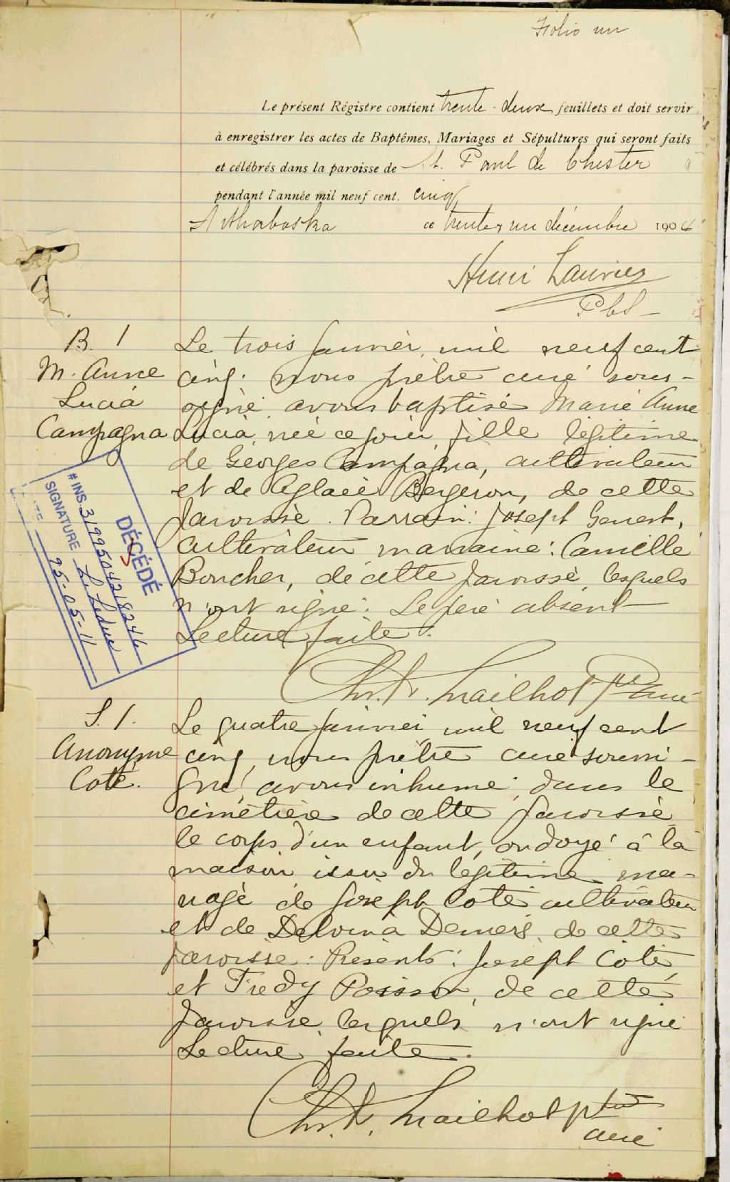 - Cette série regroupe les registres originaux de l'état civil, lesquels contiennent les enregistrements de baptêmes, de mariages et de sépultures consignés par le curé ou son représentant au cours de la période concernée par les documents.Outre les renseignements à caractère généalogique que nous pouvons y puiser, cette série peut constituer une source documentaire importante pour toute étude-statistique ou comparative sur les conditions de vie à différentes époques (mortalité infantile, espérance de vie) ou pour toute recherche portant sur l'occupation des terres (lieu de résidence), sur le mode de vie (métiers et professions, statut et âge des époux), sur les classes sociales (titres des parties impliquées, témoins/amis/parents présents lors d'un mariage), sur des évènements spéciaux (quelques mentions dans les sépultures) et sur des sujets à incidence médicale tels les maladies héréditaires (cause du décès).Cette série regroupe les registres originaux de l'état civil, lesquels contiennent les enregistrements de baptêmes, de mariages et de sépultures consignés par le curé ou son représentant au cours de la période concernée par les documents