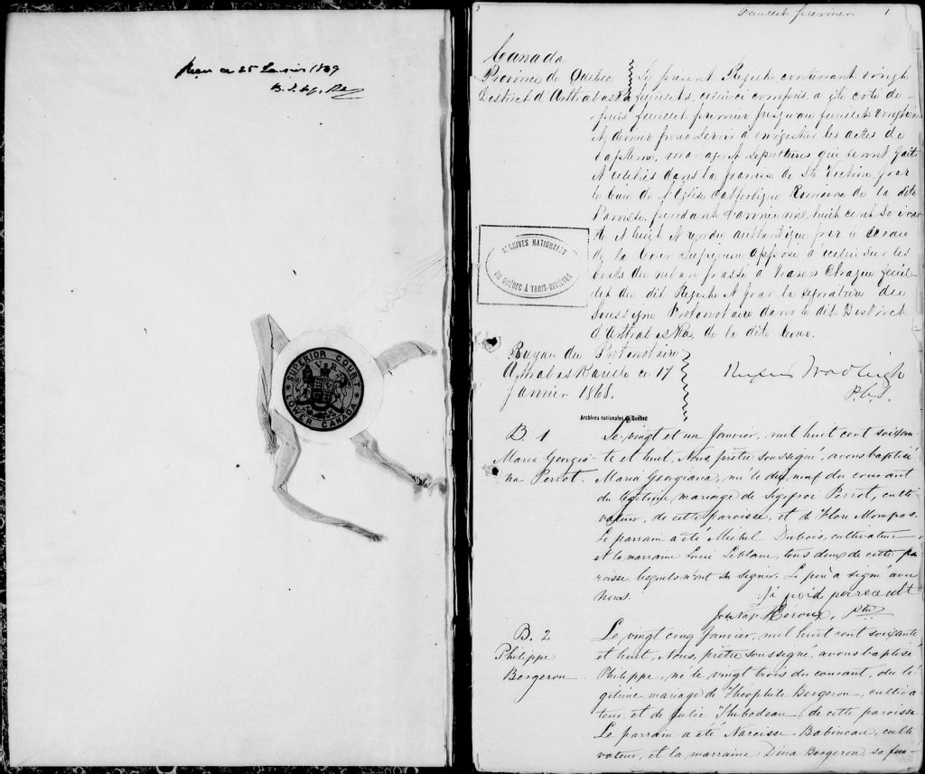 Sainte-Victoire, 1864-1921, Archives nationales à Trois-Rivières, Fonds Cour supérieure. District judiciaire d'Arthabaska. État civil, (04T,CE402,S71).