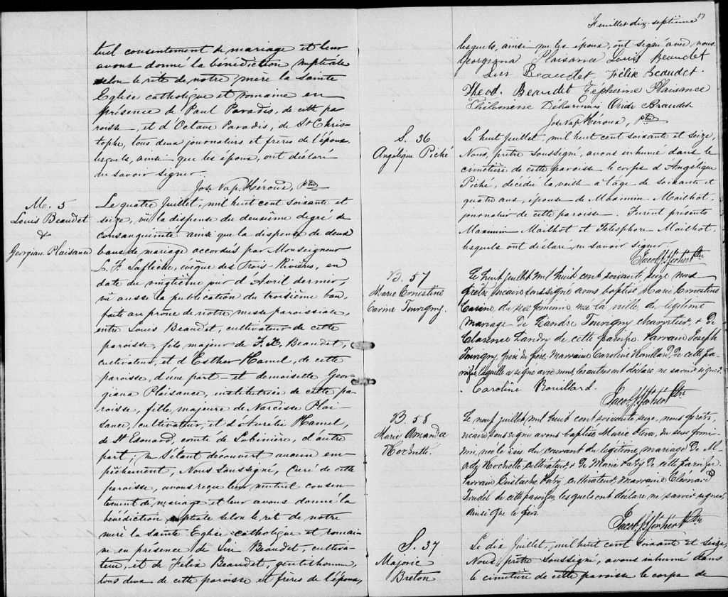 Sainte-Victoire, 1864-1921, Archives nationales à Trois-Rivières, Fonds Cour supérieure. District judiciaire d'Arthabaska. État civil, (04T,CE402,S71).