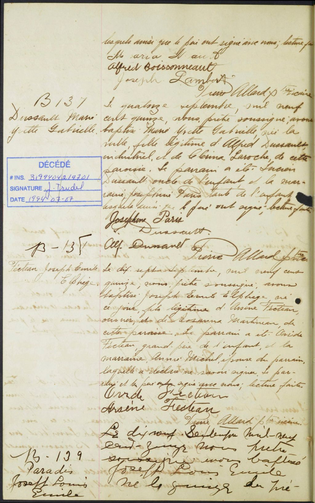 Sainte-Victoire, 1864-1921, Archives nationales à Trois-Rivières, Fonds Cour supérieure. District judiciaire d'Arthabaska. État civil, (04T,CE402,S71).