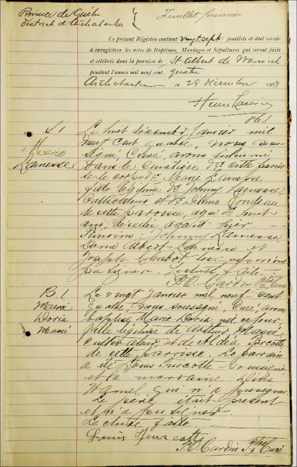 Saint-Albert-de-Warwick, 1876-1921, Archives nationales à Trois-Rivières, Fonds Cour supérieure. District judiciaire d'Arthabaska. État civil, (04T,CE402,S84).