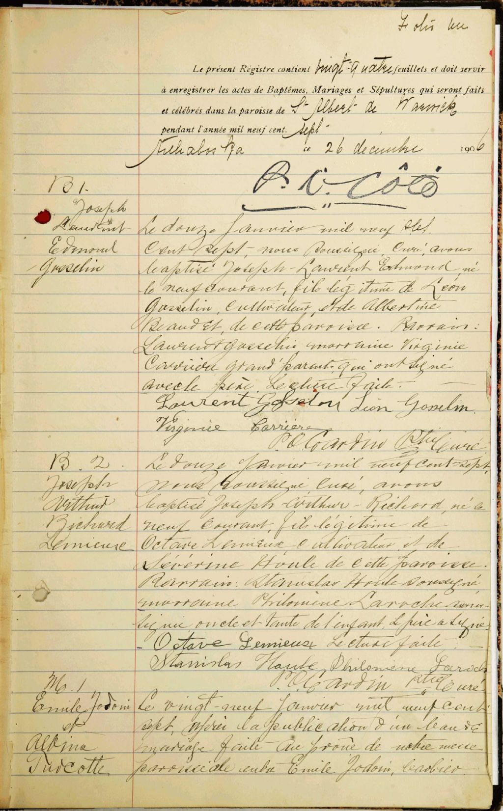 Saint-Albert-de-Warwick, 1876-1921, Archives nationales à Trois-Rivières, Fonds Cour supérieure. District judiciaire d'Arthabaska. État civil, (04T,CE402,S84).