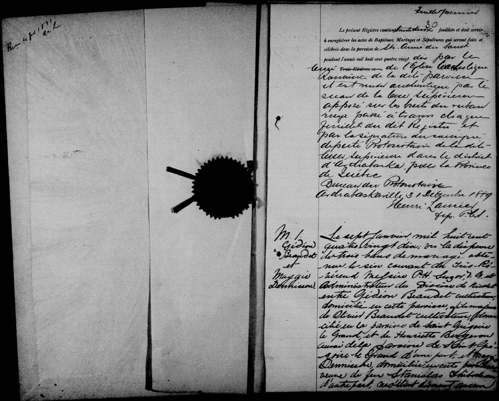 - Cette série regroupe les registres originaux de l'état civil, lesquels contiennent les enregistrements de baptêmes, de mariages et de sépultures consignés par le curé ou son représentant au cours de la période concernée par les documents.Outre les renseignements à caractère généalogique que nous pouvons y puiser, cette série peut constituer une source documentaire importante pour toute étude-statistique ou comparative sur les conditions de vie à différentes époques (mortalité infantile, espérance de vie) ou pour toute recherche portant sur l'occupation des terres (lieu de résidence), sur le mode de vie (métiers et professions, statut et âge des époux), sur les classes sociales (titres des parties impliquées, témoins/amis/parents présents lors d'un mariage), sur des évènements spéciaux (quelques mentions dans les sépultures) et sur des sujets à incidence médicale tels les maladies héréditaires (cause du décès).Cette série regroupe les [...]