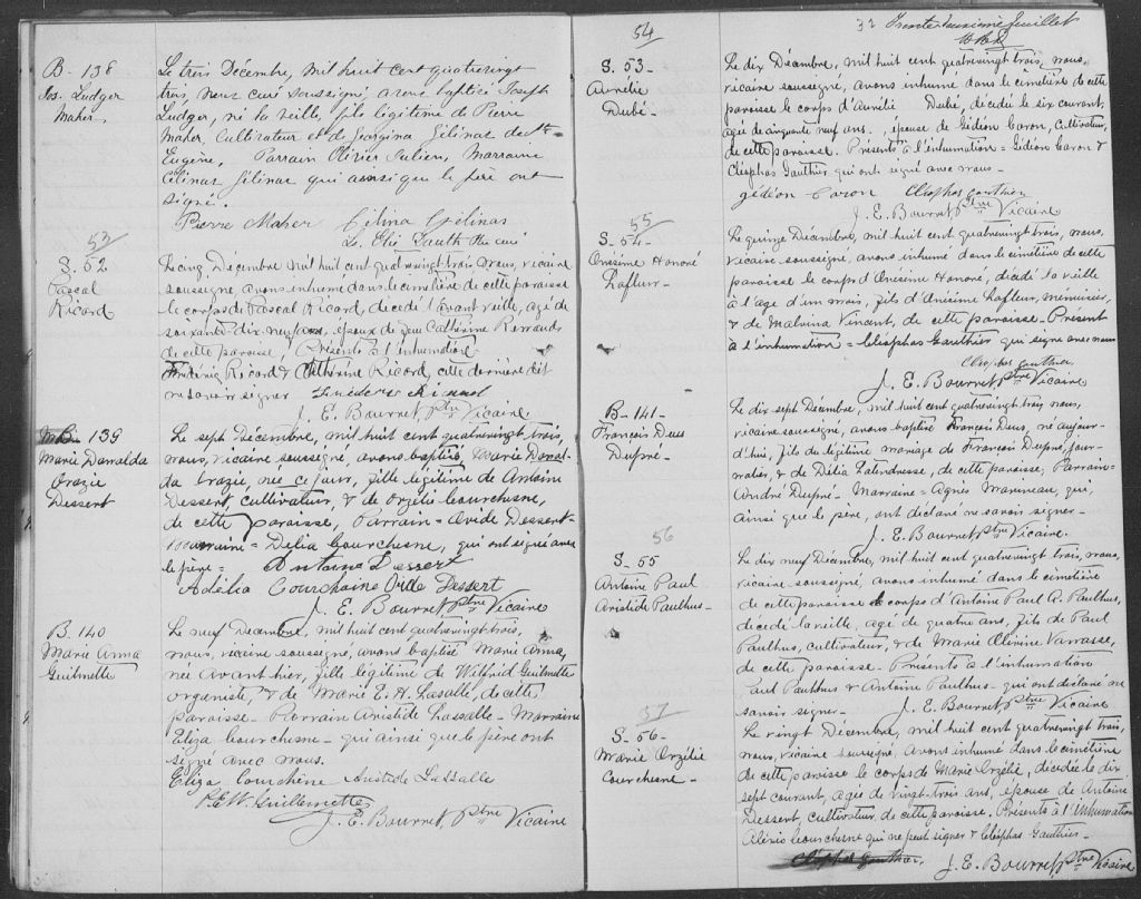 - Cette série regroupe les registres originaux de l'état civil, lesquels contiennent les enregistrements de baptêmes, de mariages et de sépultures consignés par le curé ou son représentant au cours de la période concernée par les documents.Outre les renseignements à caractère généalogique que nous pouvons y puiser, cette série peut constituer une source documentaire importante pour toute étude-statistique ou comparative sur les conditions de vie à différentes époques (mortalité infantile, espérance de vie) ou pour toute recherche portant sur l'occupation des terres (lieu de résidence), sur le mode de vie (métiers et professions, statut et âge des époux), sur les classes sociales (titres des parties impliquées, témoins/amis/parents présents lors d'un mariage), sur des évènements spéciaux (quelques mentions dans les sépultures) et sur des sujets à incidence médicale tels les maladies héréditaires (cause du décès)