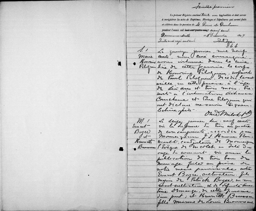 - Cette série regroupe les registres originaux de l'état civil, lesquels contiennent les enregistrements de baptêmes, de mariages et de sépultures consignés par le curé ou son représentant au cours de la période concernée par les documents.Outre les renseignements à caractère généalogique que nous pouvons y puiser, cette série peut constituer une source documentaire importante pour toute étude-statistique ou comparative sur les conditions de vie à différentes époques (mortalité infantile, espérance de vie) ou pour toute recherche portant sur l'occupation des terres (lieu de résidence), sur le mode de vie (métiers et professions, statut et âge des époux), sur les classes sociales (titres des parties impliquées, témoins/amis/parents présents lors d'un mariage), sur des évènements spéciaux (quelques mentions dans les sépultures) et sur des sujets à incidence médicale tels les maladies héréditaires (cause du décès)