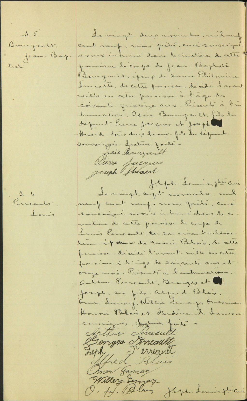 - Cette série regroupe les registres originaux de l'état civil, lesquels contiennent les enregistrements de baptêmes, de mariages et de sépultures consignés par le curé ou son représentant au cours de la période concernée par les documents.Outre les renseignements à caractère généalogique que nous pouvons y puiser, cette série peut constituer une source documentaire importante pour toute étude-statistique ou comparative sur les conditions de vie à différentes époques (mortalité infantile, espérance de vie) ou pour toute recherche portant sur l'occupation des terres (lieu de résidence), sur le mode de vie (métiers et professions, statut et âge des époux), sur les classes sociales (titres des parties impliquées, témoins/amis/parents présents lors d'un mariage), sur des évènements spéciaux (quelques mentions dans les sépultures) et sur des sujets à incidence médicale tels les maladies héréditaires (cause du décès)