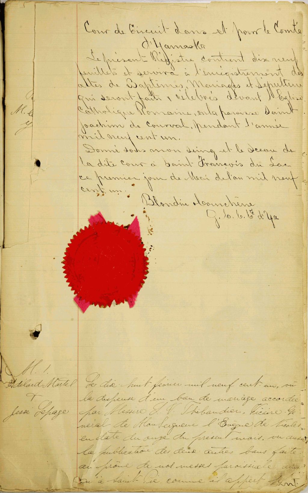 Saint-Joachim-de-Courval, 1901-1921, Archives nationales à Trois-Rivières, Fonds Cour supérieure. District judiciaire de Drummond. État civil, (04T,CE403,S26).