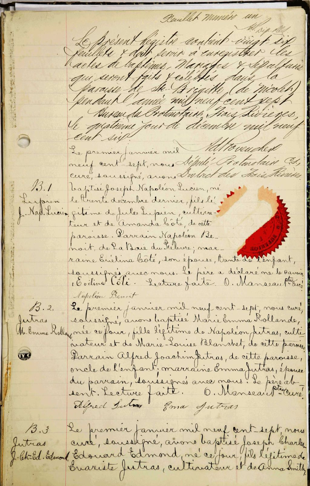 Sainte-Brigitte, 1862-1921, Archives nationales à Trois-Rivières, Fonds Cour supérieure. District judiciaire de Drummond. État civil, (04T,CE403,S4).