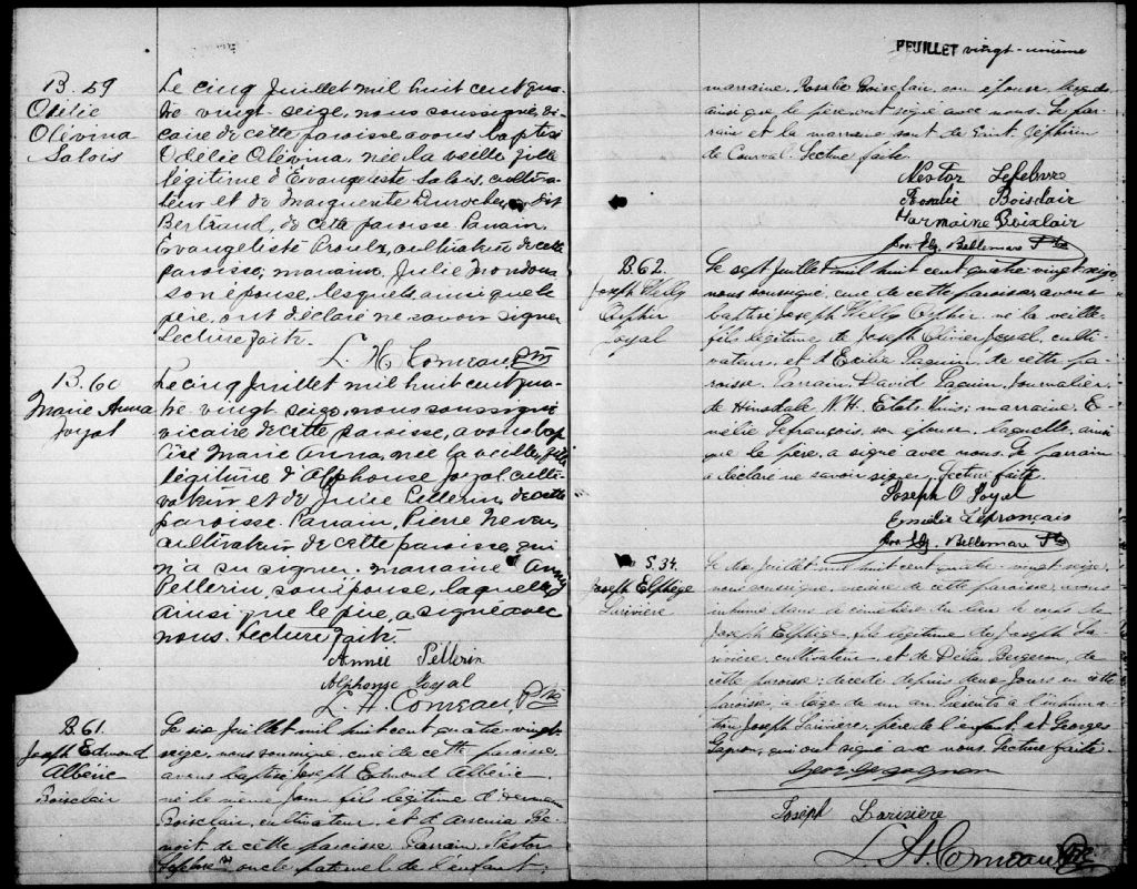 - Cette série regroupe les registres originaux de l'état civil, lesquels contiennent les enregistrements de baptêmes, de mariages et de sépultures consignés par le curé ou son représentant au cours de la période concernée par les documents.Outre les renseignements à caractère généalogique que nous pouvons y puiser, cette série peut constituer une source documentaire importante pour toute étude-statistique ou comparative sur les conditions de vie à différentes époques (mortalité infantile, espérance de vie) ou pour toute recherche portant sur l'occupation des terres (lieu de résidence), sur le mode de vie (métiers et professions, statut et âge des époux), sur les classes sociales (titres des parties impliquées, témoins/amis/parents présents lors d'un mariage), sur des évènements spéciaux (quelques mentions dans les sépultures) et sur des sujets à incidence médicale tels les maladies héréditaires (cause du décès)
