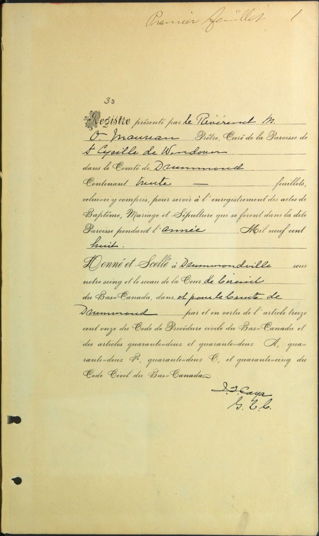 - Cette série regroupe les registres originaux de l'état civil, lesquels contiennent les enregistrements de baptêmes, de mariages et de sépultures consignés par le curé ou son représentant au cours de la période concernée par les documents.Outre les renseignements à caractère généalogique que nous pouvons y puiser, cette série peut constituer une source documentaire importante pour toute étude-statistique ou comparative sur les conditions de vie à différentes époques (mortalité infantile, espérance de vie) ou pour toute recherche portant sur l'occupation des terres (lieu de résidence), sur le mode de vie (métiers et professions, statut et âge des époux), sur les classes sociales (titres des parties impliquées, témoins/amis/parents présents lors d'un mariage), sur des évènements spéciaux (quelques mentions dans les sépultures) et sur des sujets à incidence médicale tels les maladies héréditaires (cause du décès)